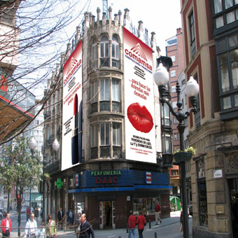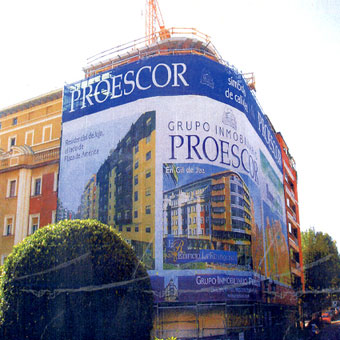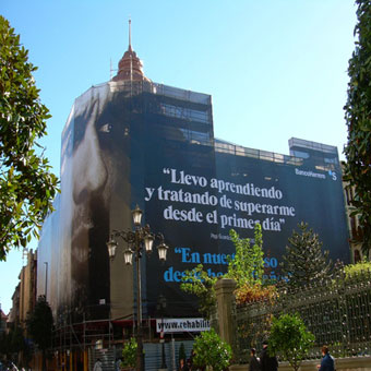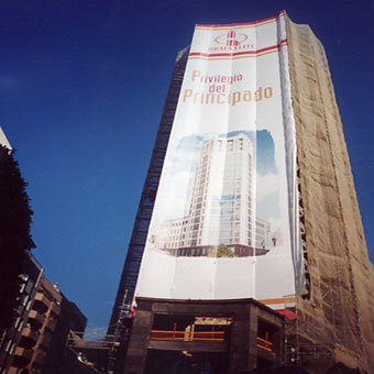 Las lonas de gran formato, instaladas sobre andamios aprovechando obras de restauración, son un método de publicidad exterior muy efectivo y de alta rentabilidad que genera un impacto visual excepcional gracias a su tamaño y su ubicación en vías públicas.