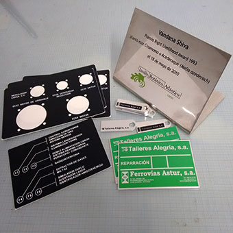 Imprimimos sobre metal, cristal, madera, papel, cartón, tela, vinilo, pegatinas, glasspack, polipropileno y casi todo tipo de plásticos.